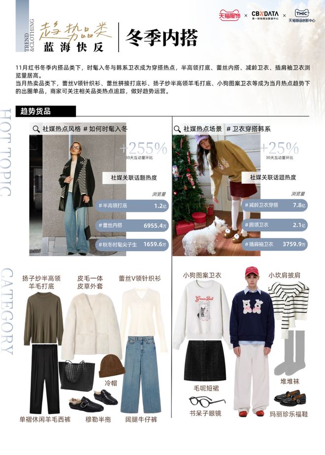 品牌应在精准把握社媒热点与品类形色质特征的基础上,结合站内趋势货盘与平台运营工具,提升新品转化效率,围绕高潜力单品打造爆款组合,在冬季服饰消费周期中驱动生意持续增长。